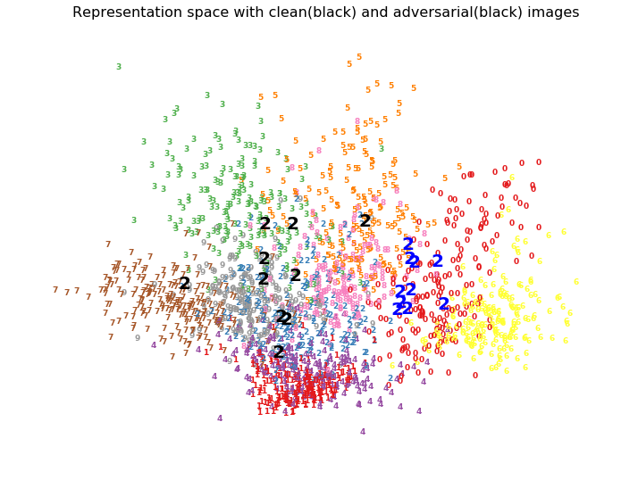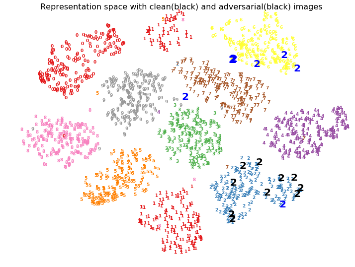 - Adversarial examples may not just affect the final representation space but also the earlier layers significantly which cause eventual misplacement of representations in incorrect cluster leading to high confidence incorrect misclassification.