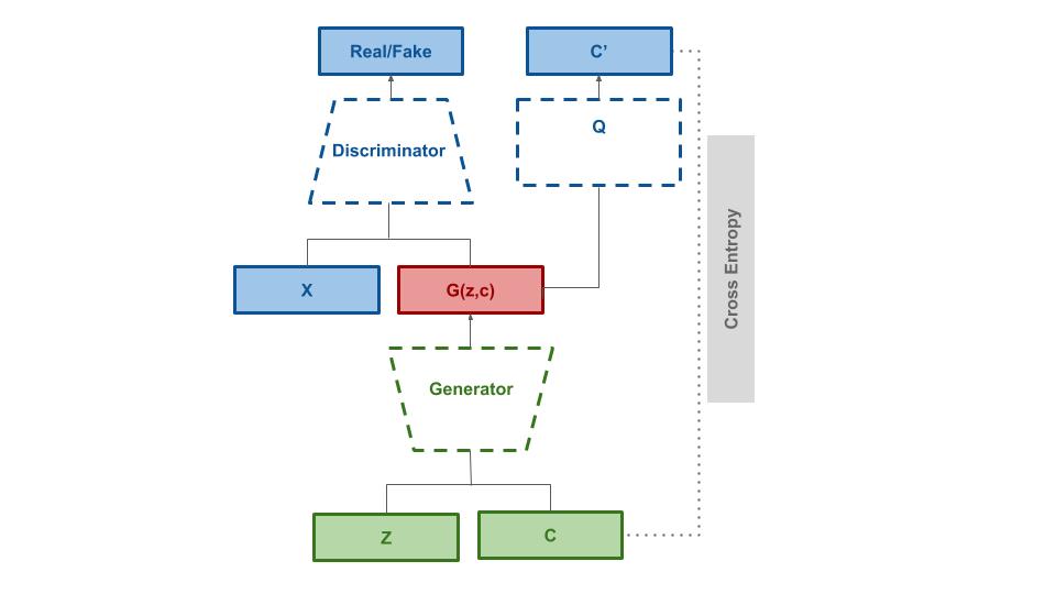 Information Maximizing Generative Adversarial Network (InfoGAN) [paper] [code]